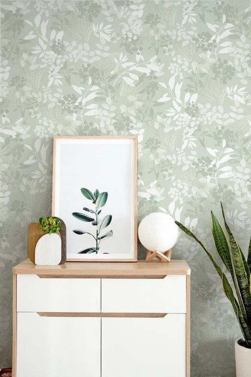 Featuring soft tones of green and white with an all over glitter finish will really add warmth and brighten any room. This vinyl paper is suitable for high traffic areas of the home including kitchen’s and bathrooms and is wipeable. Perfect for either a feature wall or an entire room.