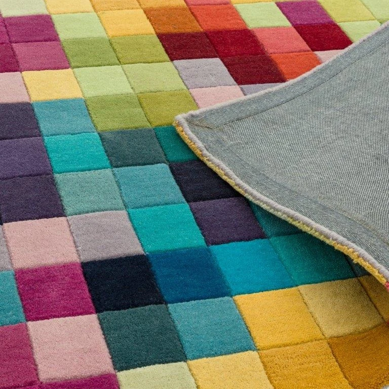 - Multi-coloured, high density wool tufted rugs in an array of geometric designs