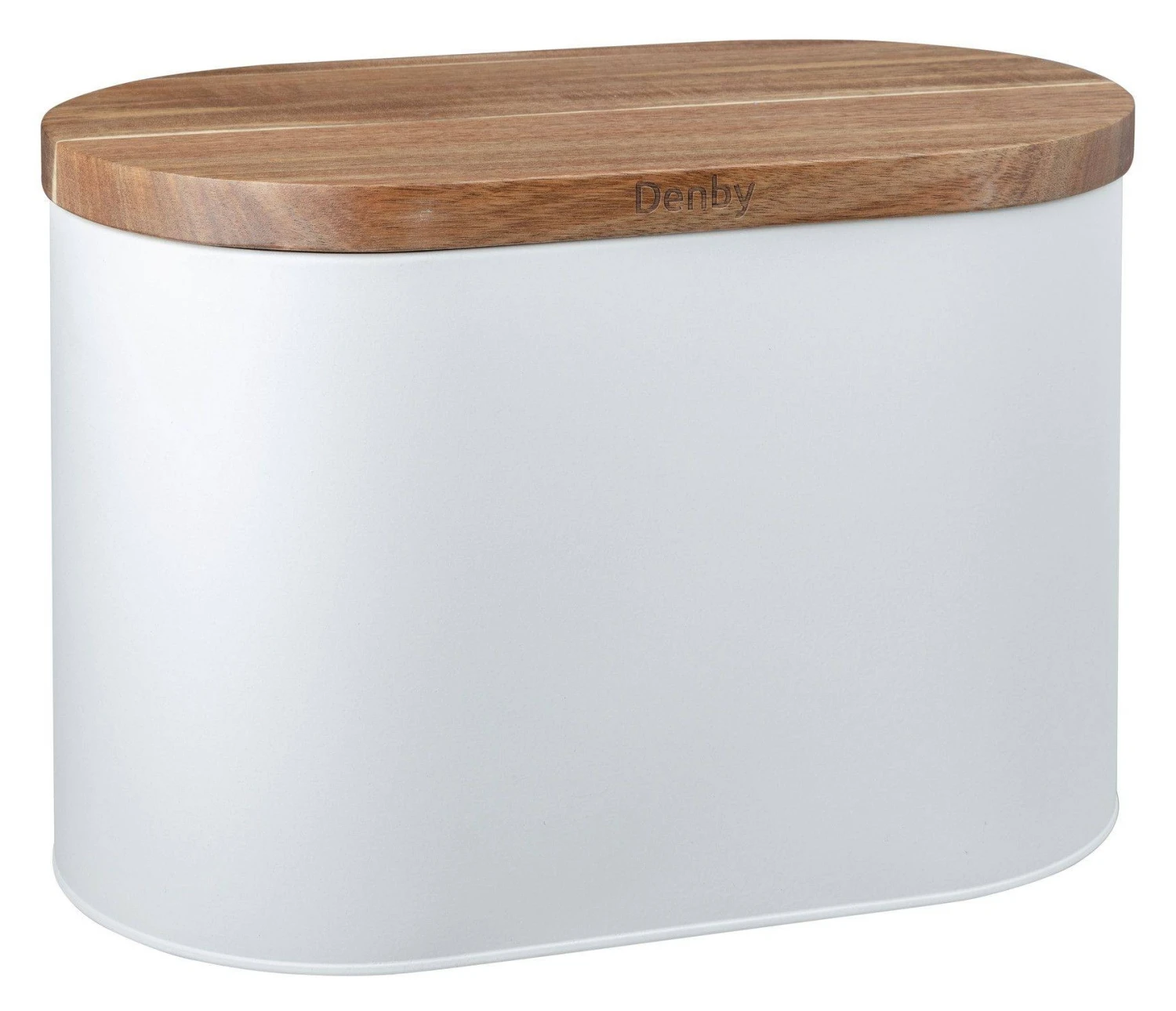 A stylish bread bin crafted from Galvanised Steel with a contemporary matt finish, complete with an Acacia wooden lid which can double up as a handy chopping board.