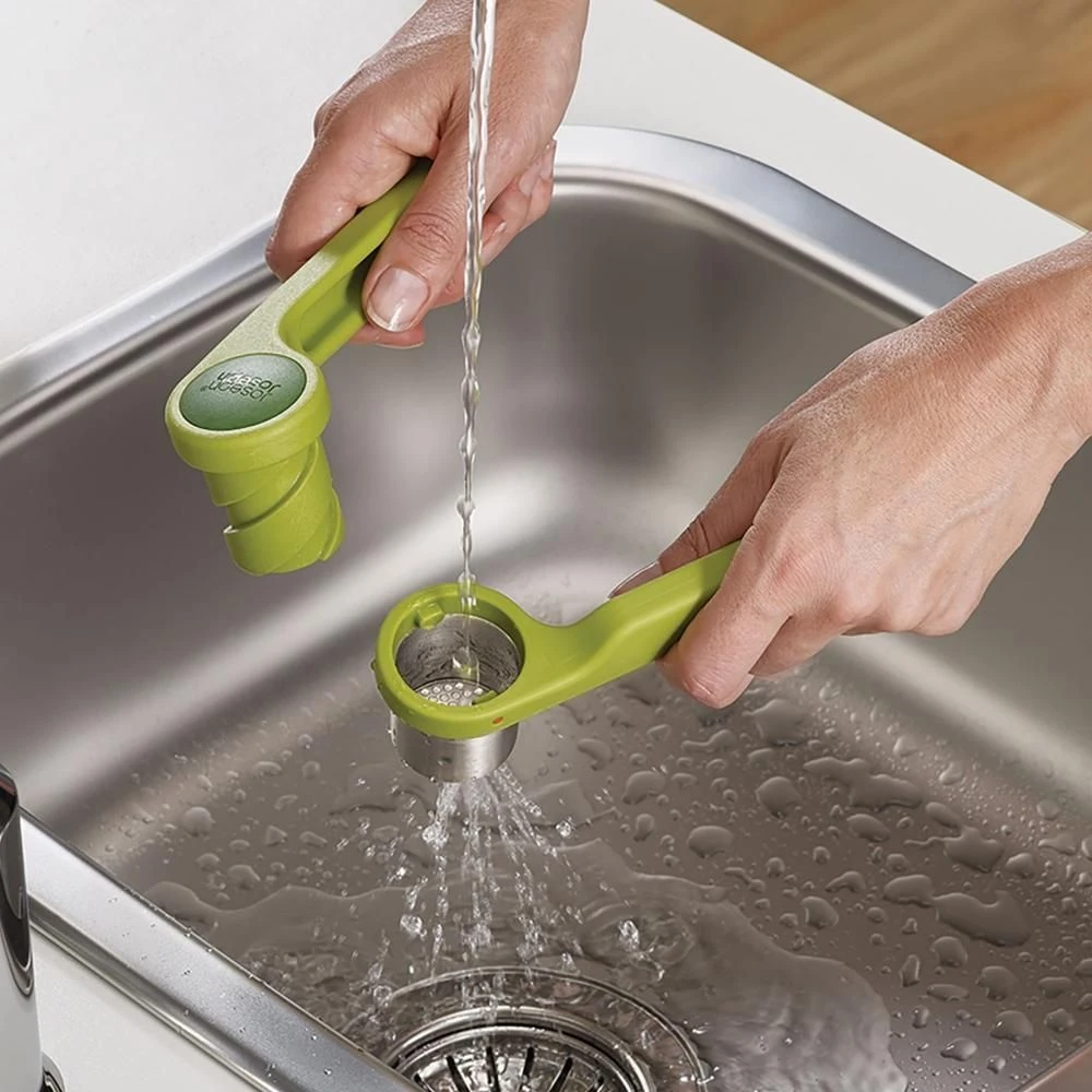 The innovative 2-piece design of Joseph Joseph Helix Garlic Press, makes crushing garlic cloves simple.With the Helix garlic press the squeezing force is applied horizontally, which is much more comfortable and utilises the power of the shoulders as well. In addition, its unique, twisting mechanism multiplies the force used, which means you get more squeezing power from less effort.