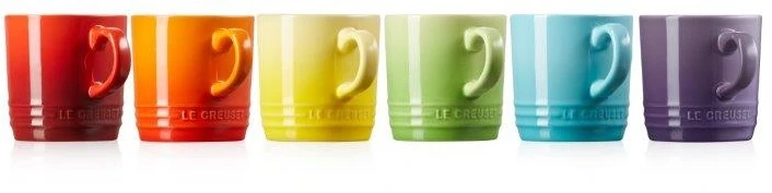 A colourful set of six Cappuccino mugs, perfect as a gift or the ideal way to start collecting in to the Le Creuset rainbow of vibrant colours. Each Le Creuset mug is crafted from premium quality clay and fired at very high temperatures to create stoneware that has a robust and high-quality finish.