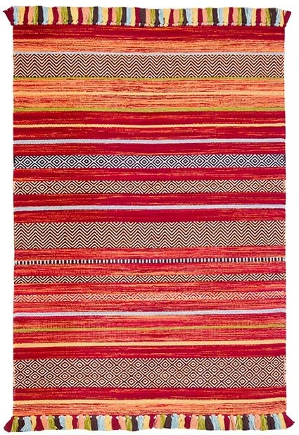 The Kelim range is skilfully hand woven to create a beautiful flat weave rug. Each piece is crafted to the highest standard using a blend of chenille and cotton yarn. Carefully finished with braided edges and tassels to complete the handcrafted ethnic look.