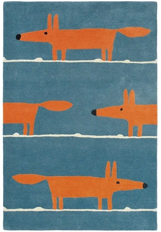 Scion Mr Fox Rugs in Denim 25318 feature a playful design with contrasting blue, orange and ivory colours that are designed to suit the modern home.
