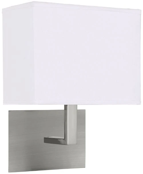 This Satin Silver Wall Light with White Rectangular Fabric Shade is stylish and classic. It has a rectangular satin silver finish wall plate and right angled arm, with a slim oblong white drum shade above. It provides a nice ambience and is controlled by a handy rocker switch.