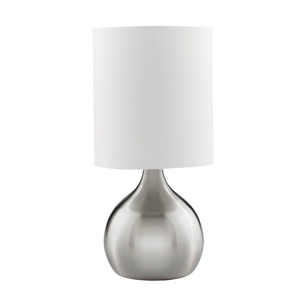 Perfect for lighting any living room, hallway, dining room or bedroom, the charming Satin Silver Touch Lamp is a short, stylish lamp with a sleek, traditional satin silver funnel and white fabric drum shade. This touch sensitive lamp features low, medium and high light settings, to create the perfect ambience in any corner of your home.